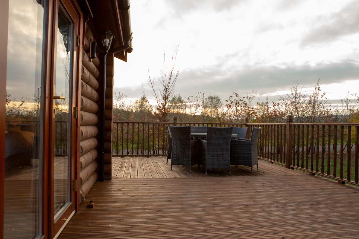 A standout feature of Pheasant’s Roost is the expansive decking area that wraps around the cabin. With seating for up to eight and relaxing sun loungers, it provides the perfect outdoor space for unwinding, dining, and enjoying the peaceful countryside setting.